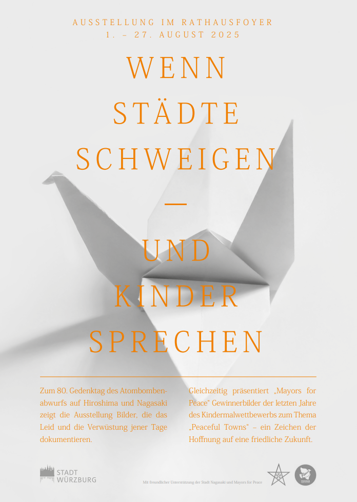 The City of Würzburg, located in Lower Franconia in Bavaria, has been a member city since 1992. In commemoration of 80 years after the atomic bombings, Würzburg actively engage in the Mayors for Peace activities – one of which was holding an exhibition with the title When Cities Fall Silent and Children Speak from August 1 to August 27, 2025.