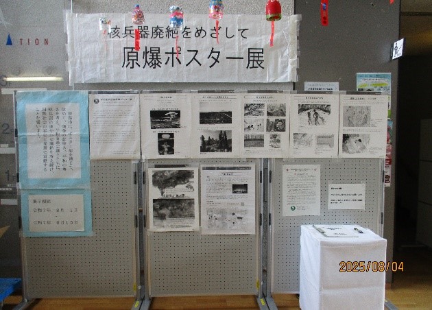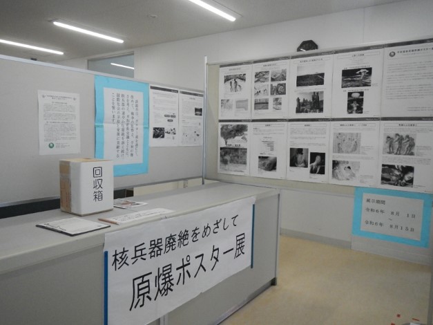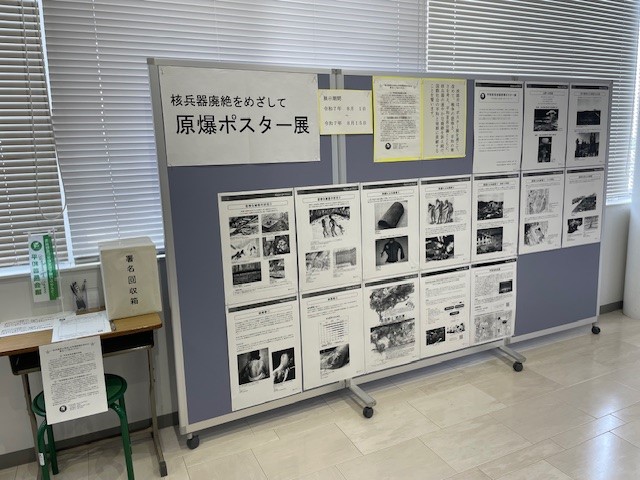 淡路市では市役所本庁舎と各事務所で、戦争の悲惨さと平和の尊さを広く伝えるため、令和7年8月1日から同月15日までの間、原爆ポスター展を開催しました。これらのポスターは、核兵器の恐ろしさや被爆の実相を訴えるとともに、世界の平和を願う強い思いを込めて制作されたもので、世代を超えて平和を考えるきっかけを与えてくれています。また、原爆ポスター展開催に伴い、「核兵器禁止条約」の早期締結を求める署名活動を行ったところ、597人の方にご協力をいただきました。