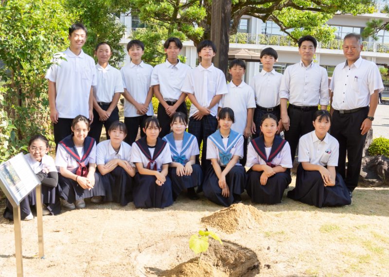 愛知県みよし市 被爆アオギリ二世の苗木を植樹 [愛知県みよし市] 国内加盟都市 2025年10月16日 本市では、核兵器と戦争の悲惨さや残酷さを知り、考え、その記憶を風化させず後世へ継承し、市民と平和に考える機会を醸成する取り組みを行っています。 戦後80年を迎えるに当たり、核兵器の廃絶と平和について考える機会を作る目的として、広島に原爆が投下された8月6日に中学生平和学習広島派遣団とともに平和への願いを込めて、被爆アオギリ二世を植樹しました。 写真提供:みよし市