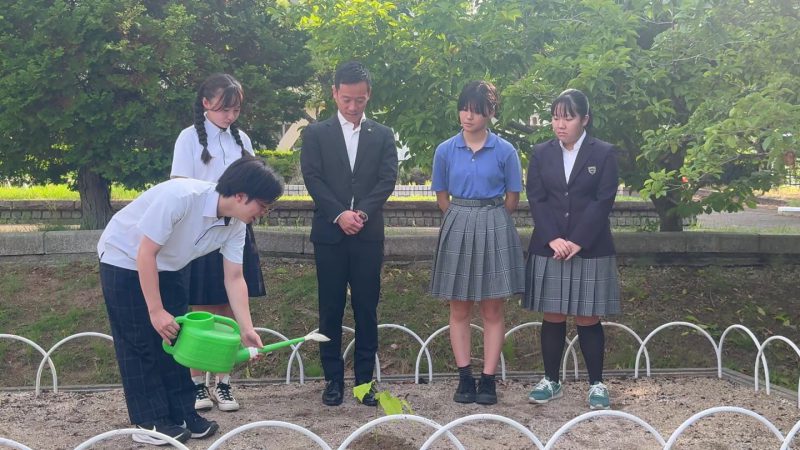 大阪府泉大津市 被爆アオギリ二世の苗木を植樹 [大阪府泉大津市] 国内加盟都市 2025年10月21日 本市では、戦後80年を迎えるにあたり、平和の尊さや命の大切さを次の世代へと受け継いでいくため、南出市長が、戦争を知らない世代である市内の中学生とともに、東雲公園内で被爆アオギリ二世の植樹を行いました。 誰もが訪れることができる公園にこの樹木を植えることで、日々の暮らしの中で平和を感じ、考えるきっかけとなることを願っています。 今後も、苗木の成長とともに、平和への思いを市民の皆さまと一緒に育んでまいります。 写真提供:泉大津市