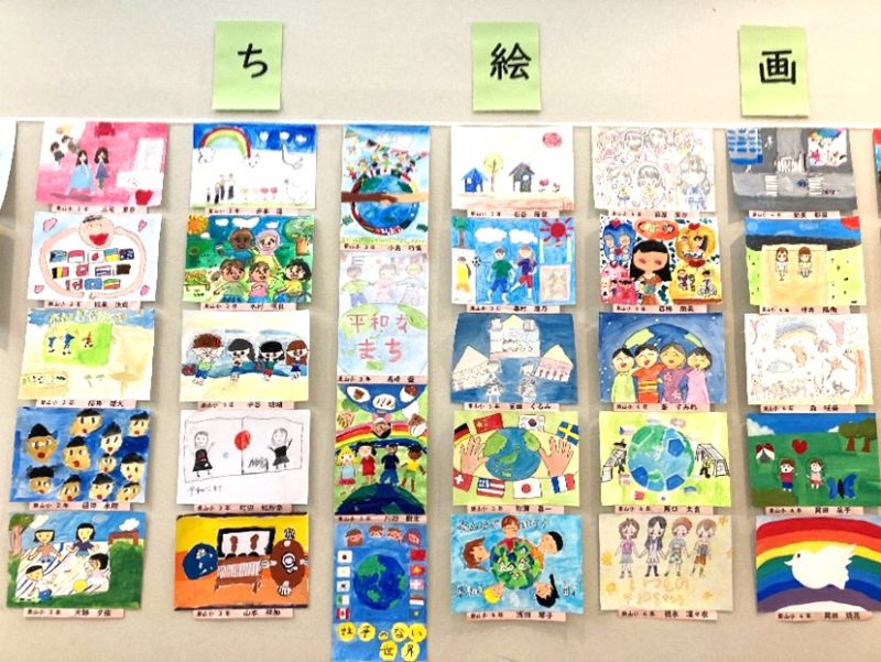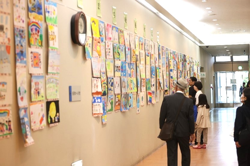 大府市では、2025年10月5日(日)、平和首長会議主催の「こどもたちによる“平和なまち”絵画コンテスト」に応募のあった市内の小中学生らの全262作品を市役所に展示しました。