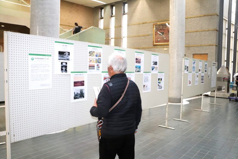 市役所1階の吹き抜けホールで開催したこともあり、市民の皆さんだけでなく、事業者の方が足を止める姿も見受けられました。特に原爆ポスター展では、お子さんを連れたお母さんがポスターを見ながら話し込む姿や、若い男性が被害の様子にじっと見入る姿もあり、幅広い年齢層の方々に戦争と平和について考えていただく機会となりました。