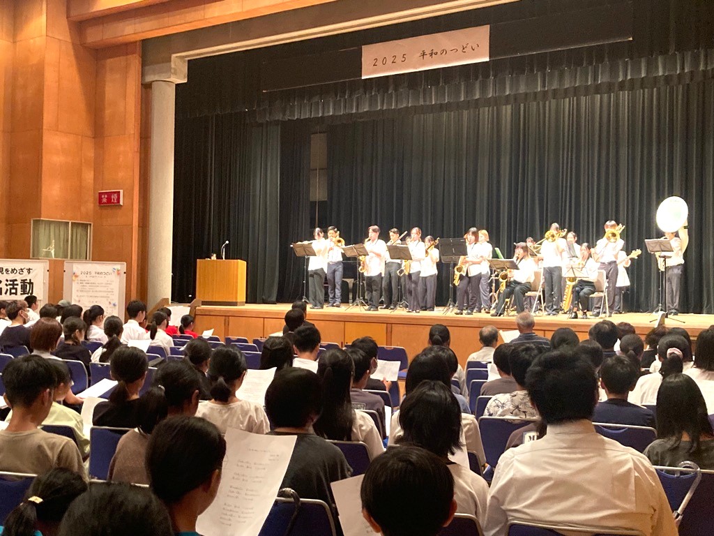 戦争体験者の講話や紙芝居、市内児童生徒による平和学習や音楽の発表、高校生や大学生による日頃の活動の発表のほか、市内大学生による平和をテーマにしたジャズアンサンブルの演奏が行われ、市民のみなさんと一緒に平和について考えるきっかけの場となりました。