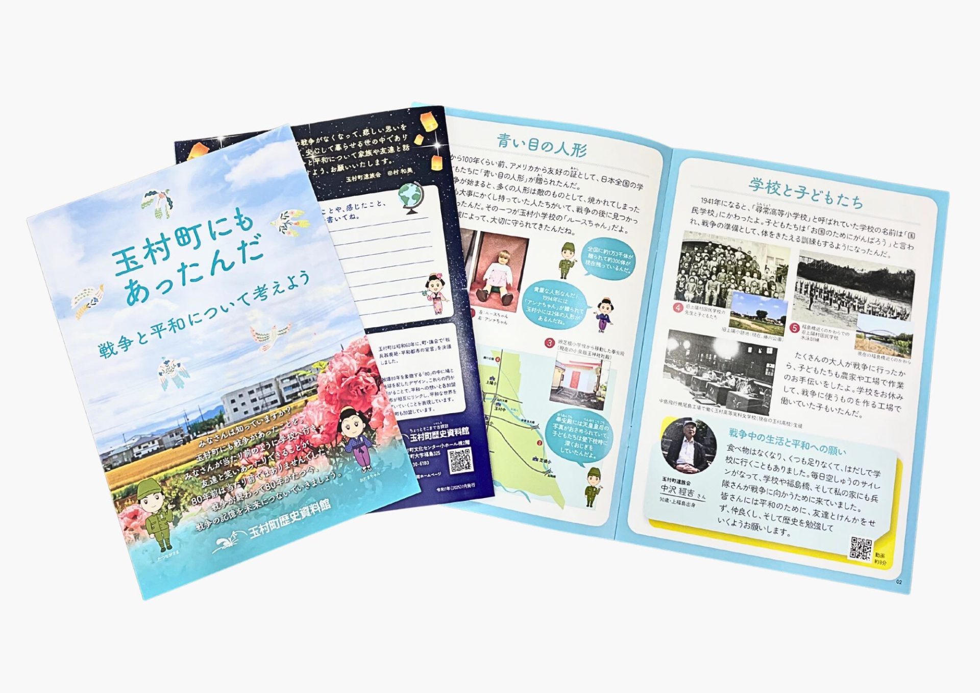 さらに、「戦争と玉村町 戦後80年パネル展」を開催するとともに、子ども向け教材として、動画「戦争の記憶の継承~子どもたちへのメッセージ~」や、パンフレット「玉村町にもあったんだ 戦争と平和について考えよう」を作成しました。