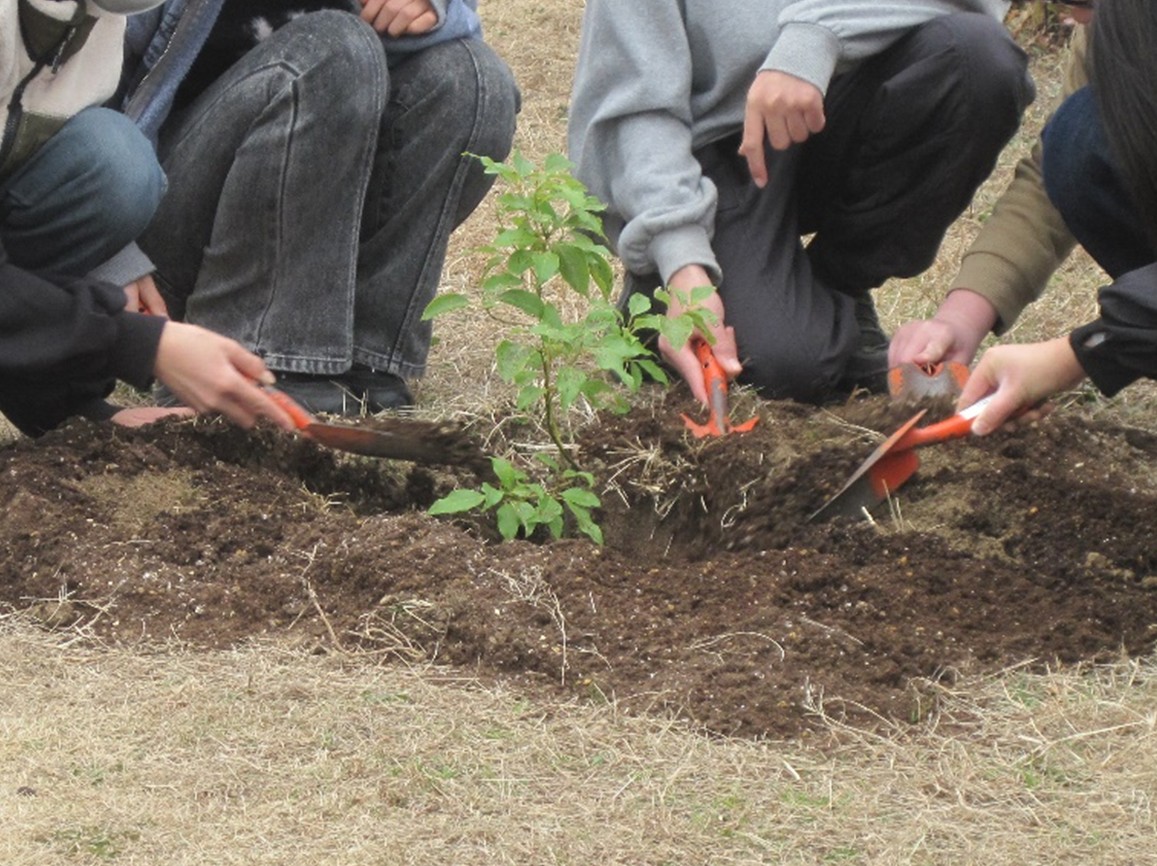 2月5日(木)新宮町立新宮北小学校、2月6日(金)新宮町立新宮東中学校において、平和首長会議より配付いただきました「被爆クスノキ二世」の苗木を校庭に植樹いたしました。